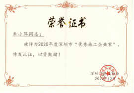 ?1月6日,深圳建筑業協會發布《關于表彰2020年度深圳市優秀施工企業家的決定》[深建協字〔2021〕5號],深安企業朱小萍董事長和吳潮豐總經理均獲評為2020年度深圳市“優秀施工企業...